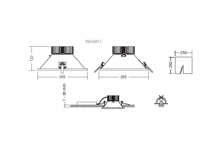 Diese quadratische LED-Einbauleuchte überzeugt durch ihre hohe Lichtausbeute und einen hohen Sehkomfort durch ihre spezielle Optik mit prismatischem Diffusor und mattem Reflektor. Ebenso wie das Schwestermodell PRETTUS bietet die NOVIEL ein temperaturgeschütztes Netzteil, eine sehr hohe Farbkonsistenz, sowie DALI oder ein integriertes Notlicht. Die Noviel II gibt es in 3 verschiedenen Einbaugrößen von S bis L und 6 verschiedenen Leistungsklassen.