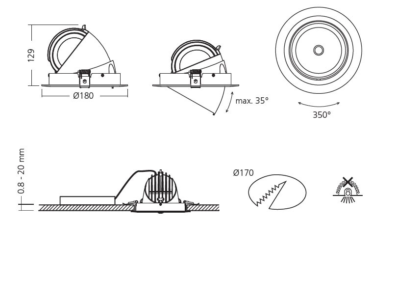Ein einstellbares und schwenkbares Downlight! Im Vergleich zu unserer Prettus ein deutlich einfacher gestricktes Downlight. Aber durch die Gehäusekonstruktion problemlos auf Gegenstände oder Bereiche ausrichtbar. Mit einem hocheffizienten Facettenreflektor und einem Abstrahlwinkel von 60° ist dieses Downlight in Durchgangs- und Flächenbereichen sehr gut einsetzbar und auch in Verkaufsräumen zum Ausleuchten von Aktionsflächen.