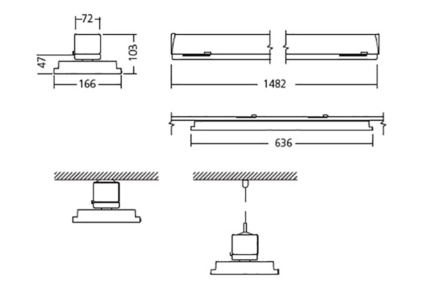| Montage | Deckenmontage (Modul zu unserem PRESTIGE Tragschienensystem |